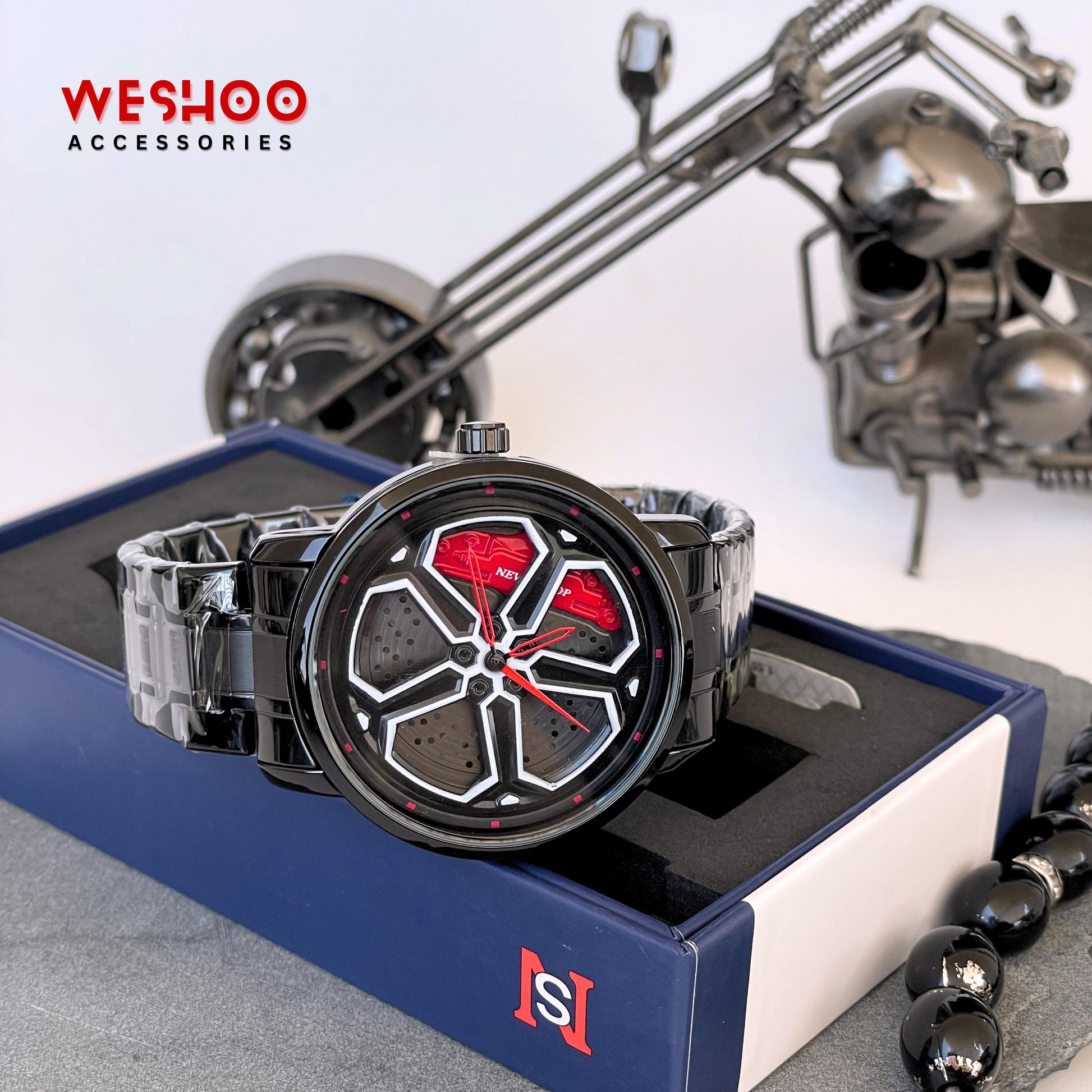 Bold. Unique. Unstoppable. The Never Stop watch features a striking wheel rim dial design, durable metal strap, and reliable quartz movement. Built for those who live fast and never settle.