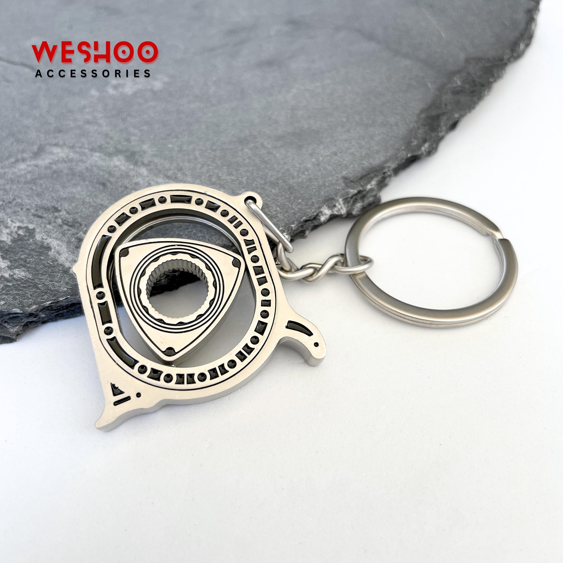 Show your love for Mazda with this rotary engine keychain. It features a rotating design, just like the real engine, and brings to mind the iconic "brababrab" sound of Mazda's rotary engines. A must-have for any Mazda fan!"