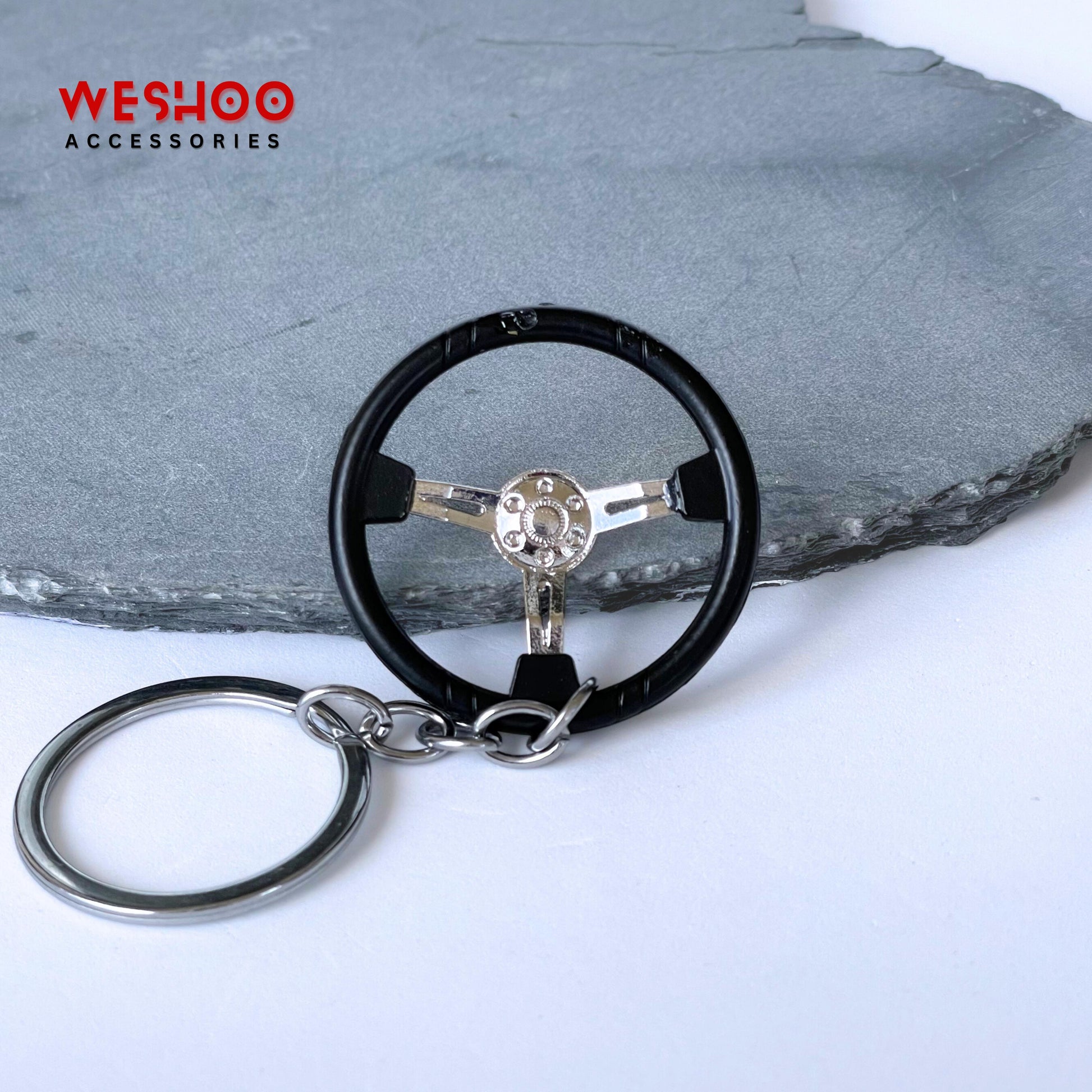 Hold the wheel wherever you go! This racing steering wheel keychain features a detailed design, bringing the feel of the race car to your keys.